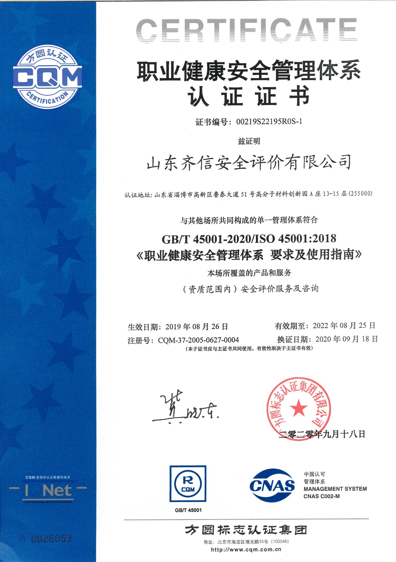 山東齊信安全評價有限公司成立于2005年3月,注冊資本300萬元人民幣,固定資產總值804.8728萬元。法定代表人徐光明,注冊地址及辦公地址位于淄博高新區魯泰大道51號高分子材料創新園A座13-15樓。2005年9月取得安全評價機構乙級資質。自國家應急部1號令實施以來,公司于2020年1月15日取得新安全評價資質,業務范圍包括:陸上油氣管道運輸業;石油加工業,化學原料、化學品及醫藥制造業;金屬冶煉。2018年12月21日取得安全生產標準化二級評審單位,評審范圍:危險化學品、紡織、建材、輕工、冶金、機械。 公司現有人員41人,其中專職安全評價師37人,注冊安全工程師26人,研究員1人、碩士5人、雙學士1人,山東省安全專家庫專家1人、教授級高工1人,高級工程師8人、工程師22人,專職危險化學品標準化評審員、工商貿標準化評審員30人,本科以上學